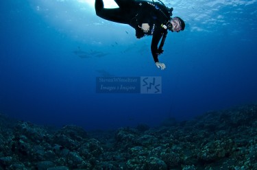 Ray or two swimming along the reef. On our last dive here I just happened to take a shot of my favorite dive buddy and when I looked at the photo after the dive I noticed something in the background. It happened to be a pod of spinner dolphin swimming by in the distance. We could hear them underwater so we knew they were close, but I did not realize that they were that close.